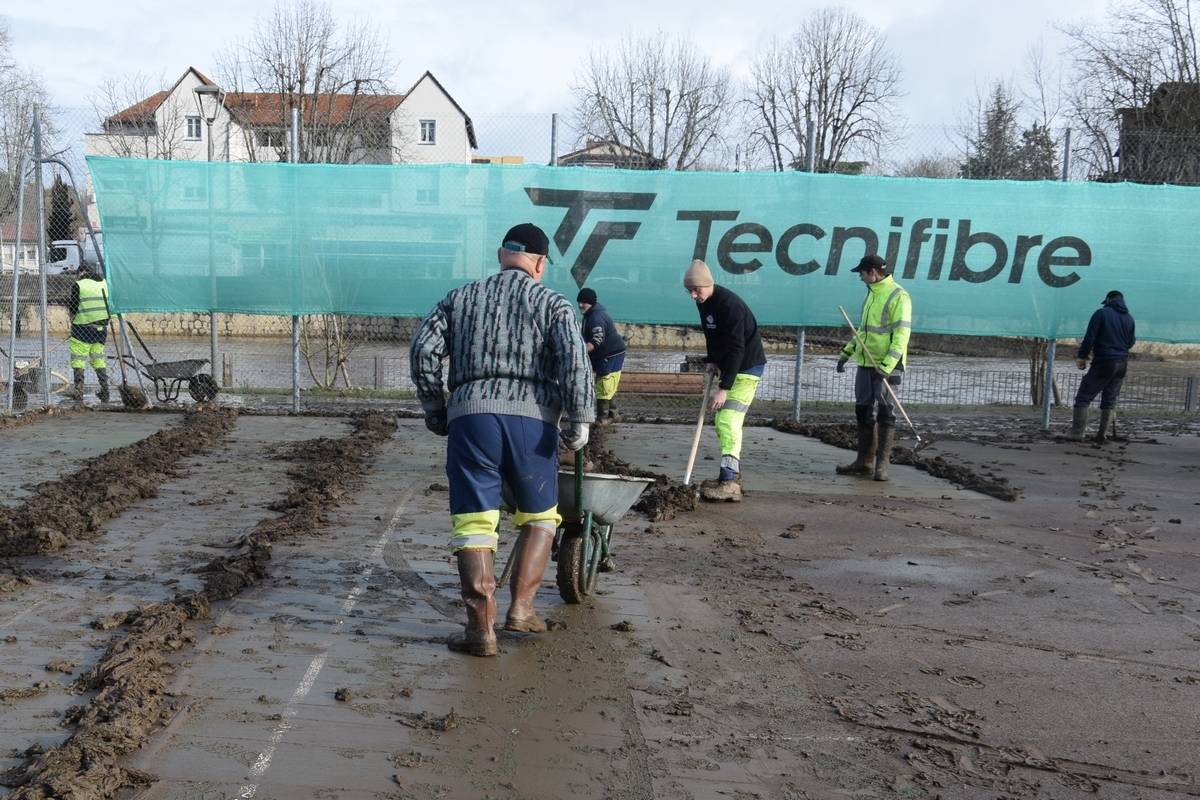 On sait que la tempête Nils a fâcheusement marqué son passage à Figeac le jeudi 12 février, en particulier sur la Prairie des Pratges, une nouvelle fois et en grande partie, inondée par le Célé. Ce dernier est venu recouvrir l’esplanade des terrains de tennis, point le plus bas et donc le plus vulnérable du secteur, pour monter rapidement jusqu’à dépasser la hauteur du filet sur les deux premiers courts. Plus lente, sa décrue a laissé un spectacle de désolation transformant ce bel espace vert en une morne plaine, couverte de boue et de détritus. La probabilité d’une nouvelle inondation semblant écartée à partir du vendredi 20 février, les agents de la ville sont intervenus, aidés par quelques bénévoles du club. Racler les sols, évacuer la boue, rincer les surfaces à grande eau pour retrouver les couleurs d’origine, tout ceci a nécessité une longue journée de dur labeur pour une bonne cinquantaine de bras ! Ainsi, le TC Figeac est prêt pour le 8 mars, date d’ouverture des compétitions régionales interclubs, avec 5 équipes engagées dont la première qui retrouve sa place dans l’élite occitane. Les championnats en cours pour les jeunes, aussi bien en individuel qu’au travers de leurs 7 équipes, le challenge Christian Maury mené tambour battant avec déjà quatre victoires consécutives et le tournoi interne à ne pas négliger avec ses 35 engagés devraient assurer une belle reprise des activités sur des installations intégralement retrouvées.